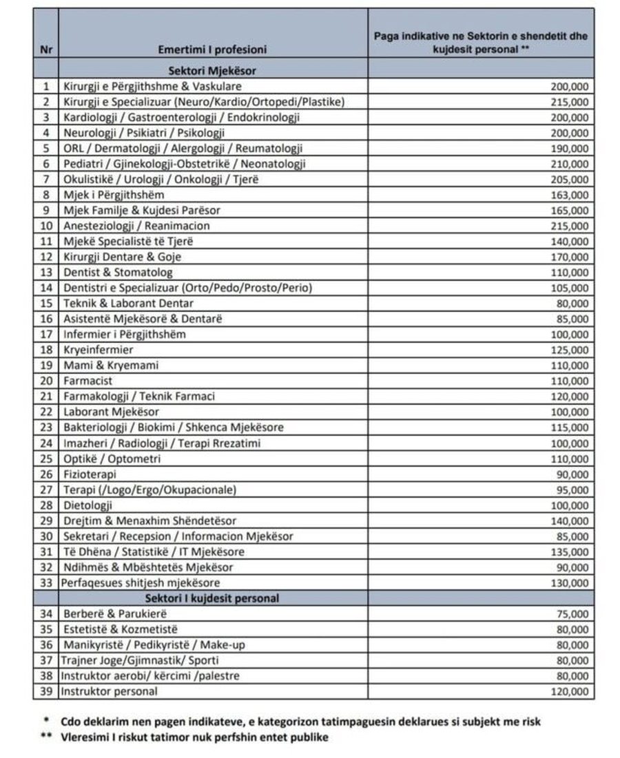 “Tatimpaguesit që deklarojnë paga nën nivelin e pagave indikative për profesionet përkatëse, apo që ndryshojnë kategorizimin e profesionit të punonjësit me qëllim deklarimin e një page më të ulët, do të konsiderohen me risk dhe do të jenë objekt verifikimi nga strukturat e specializuara të Administratës Tatimore”, vijon njoftimi.